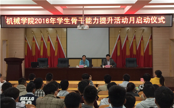 为进一步加强学生骨干队伍建设,由院团委主办的“学生骨干能力提升活动月启动仪式暨首场专题讲座”于10月23日上午在院楼205会议室顺利举行,院党委副书记许荣梅、材料学院团委书记朱伶俐、院团委廉宁宁及各学生组织骨干近200人参加了仪式,院团委书记张洪良主持仪式。