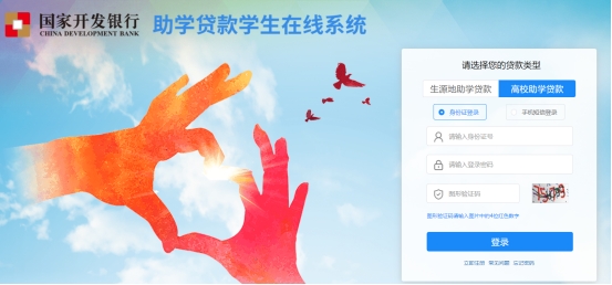 申请贷款学生通过“国家开发银行学生在线服务系统”(https://www.csls.cdb.com.cn)选择高校助学贷款,进行注册录入,最好用IE兼容模式。