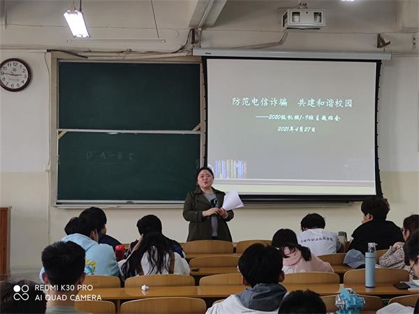 班会中,辅导员为同学们详细讲解常见的诈骗手段,如冒充领导熟人,冒充政府人员,刷单返利,虚假贷款,冒充电商客服,网络虚假产品交易,虚假购物,虚假中奖,虚假博彩,虚假服务,虚假投资理财,虚假中介,网络恋爱等,并鼓励同学们分析易受骗的原因,告诫同学们提高防范意识,抵制诱惑,不要贪小利,存侥幸心理,如果遇到诈骗情况,要及时向学校保卫部或110报案,尽可能保留证据,积极配合调查破案。