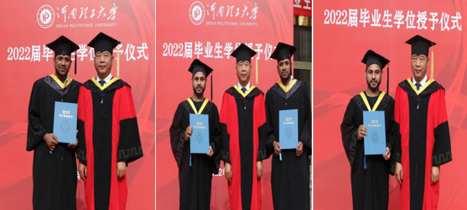 院长张新民为留学生颁授学位证并合影