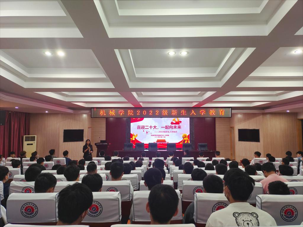 机械学院于9月25日上午9点在机械楼101、102、205、305等教室召开2022级新生的入学教育,学院党委副书记许荣梅、学工办主任王瑞瑞、辅导员任秀安等6名老师分别从政治思想引领、心理健康、国家奖助、职业规划、树立正确的宗教观、遵规守纪等方面为新生做详细解读。机械学院2022级学生800余人参会。