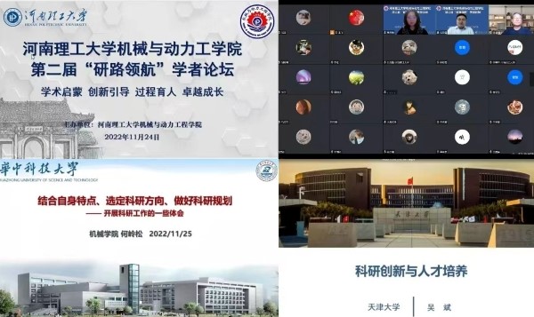 为稳步提高我院研究生综合科研能力、开拓科研视野、论道解惑。11月24和25日上午,机械学院采取线上会议的形式举办机械学院第二届 “研路领航”学者论坛。本次论坛特邀请华中科技大学国家级教学名师何岭松教授、天津大学国家“万人计划”和科技部中青年科技创新领军人才推进计划获得者吴斌教授以及本院优秀青年教师樊克松、申志豪、李田等做学术报告。全体博、硕研究生以及学院青年研究生导师参加了此次论坛,论坛由我院副院长张登攀、研管办主任曹月坤主持。