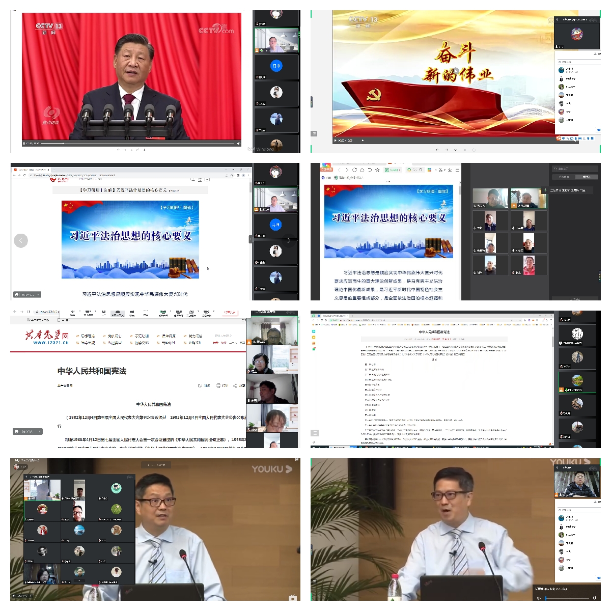 多种形式学法。学院组织师生通过集体学习、个人自学等形式观看学习习近平法治思想,领会蕴含其中的马克思主义立场观点方法,重点学习了《宪法》《习近平法治思想学习纲要》《国家安全法》《网络安全法》《保密法》《反间谍法》《教育法》以及国家民族宗教工作相关法律法规、党规党纪。组织教职工观看焦点访谈《奋斗 新的伟业》纪录片,深入学习其中蕴含的法治思想。组织教职工观看中国人民大学法学院院长韩大元教授解读《中华人民共和国宪法》视频。组织辅导员为学生讲解《学生手册(修订)》相关条文。