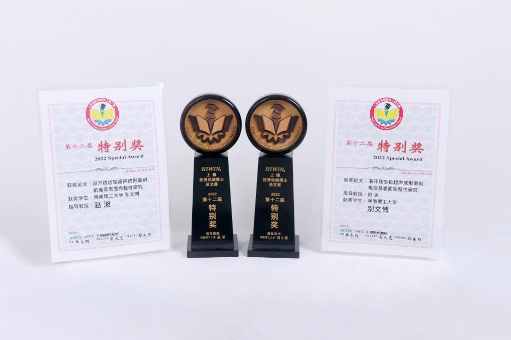 2023年5月13日,由中国机械工程学会主办的第十二届上银优秀机械博士论文奖颁奖典礼在山西太原晋祠宾馆举行。经过与清华大学、华中科技大学、上海交通大学、大连理工大学、太原理工大学、天津大学、重庆大学、北京理工大学等全国机械强校的激烈竞争,我院2021届博士别文博(指导教师:赵波教授)获得特别奖,其博士论文题目为《渐开线齿轮超声成形磨削机理及表面完整性研究》,实现了我校在该全国奖项上零的突破。