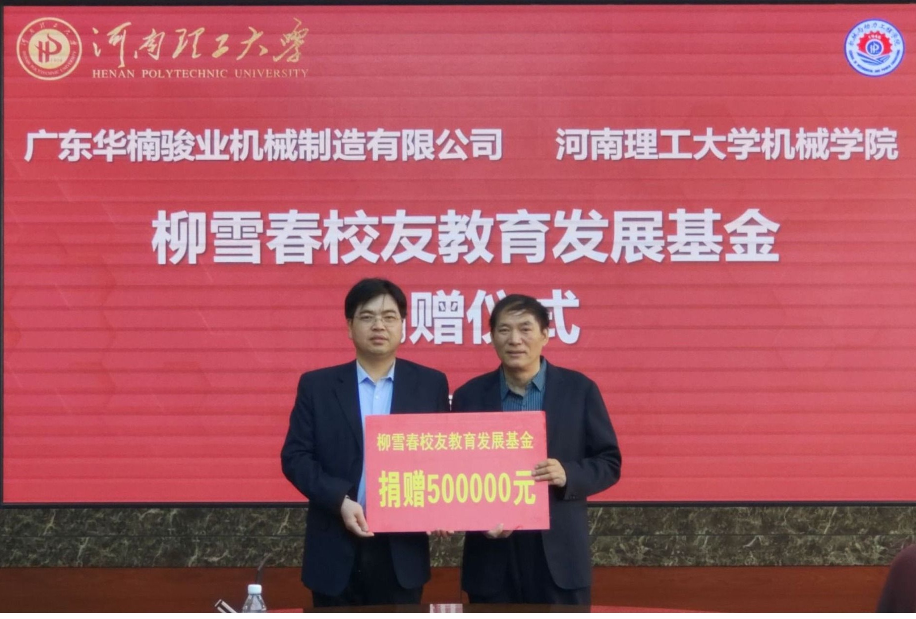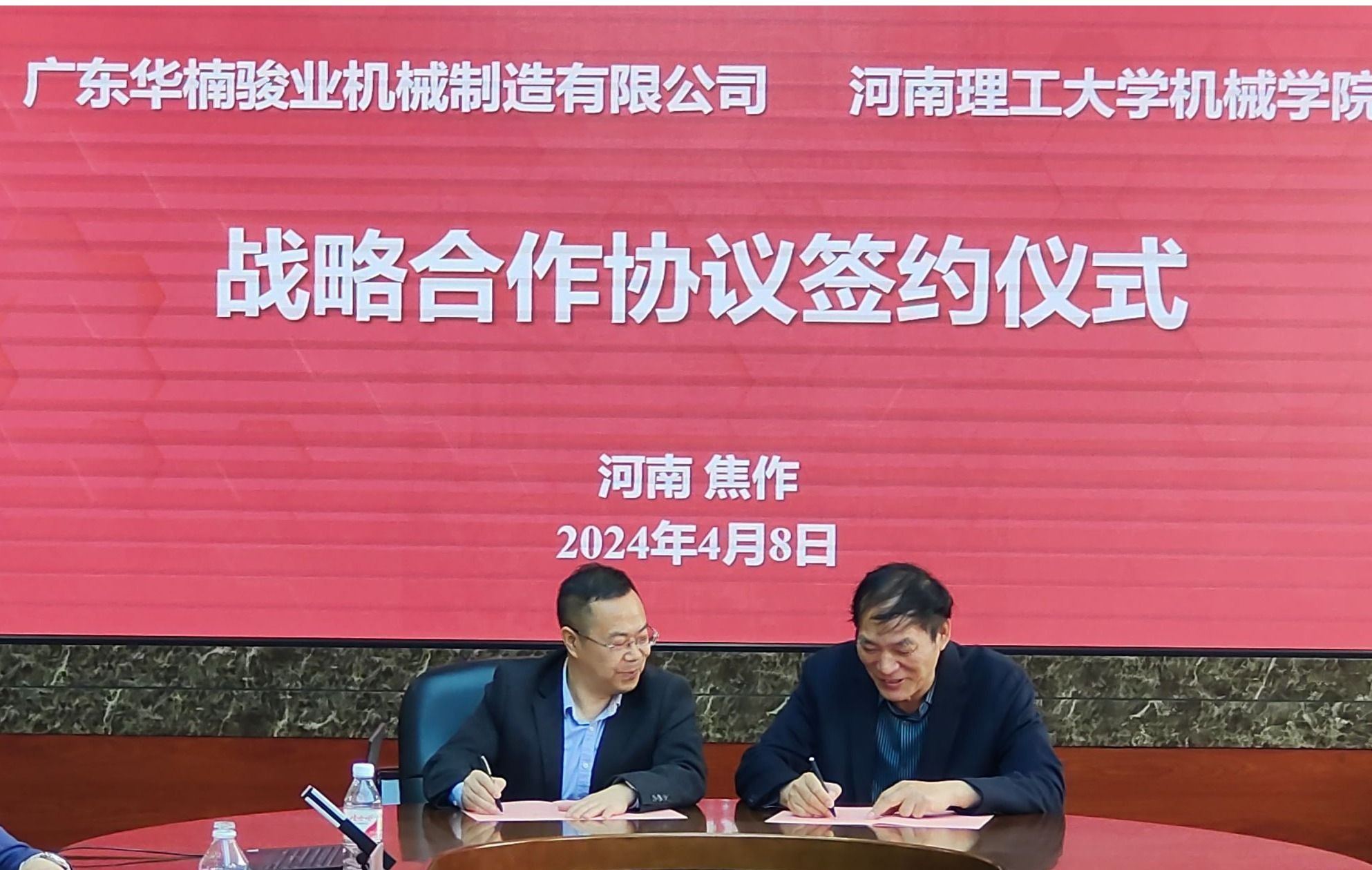 4月8日上午9点,我院与校友企业广东华楠骏业机械制造有限公司战略合作协议签约暨柳雪春校友教育发展基金捐赠仪式在机械学院217会议室举行。副校长程伟、校友与社会合作办主任范永明、我院校友广东华楠骏业机械制造有限公司董事长柳雪春、学院党政领导及部分师生参加了仪式,仪式由学院党委书记余本胜主持。