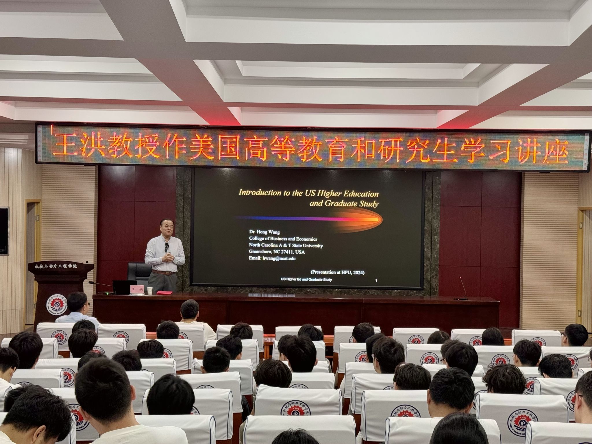 王洪/WANG HONG,美国北卡农工州立大学的终身教授,主要研究领域为人工智能、企业信息系统、商业智能。他在美国学习、生活、工作30余年。是河南理工大学与美国北卡农工州立大学合作办学项目的奠基人之一,致力于中美高校合作多年。近10年来,王洪教授负责接待了来自河南理工大学的赴美留学生和访问学者并做出了卓越贡献,并多次来河南理工大学讲授中美合作项目的课程。