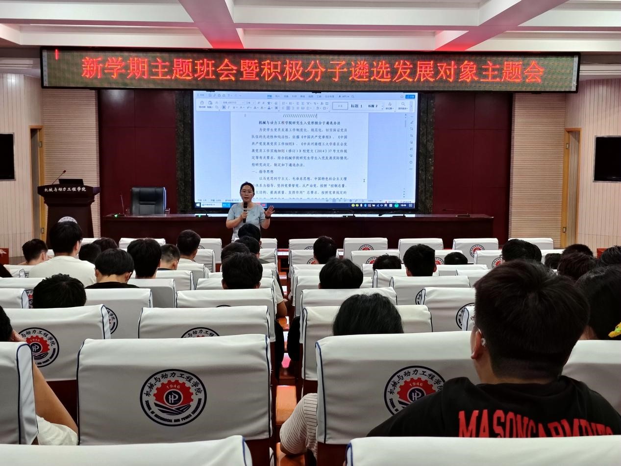 为引导2022级研究生以饱满的精神风貌投入到新学期的学习生活中,帮助同学们尽快适应假期后的转换与心理调整。机械学院于8月31日在院楼205会议室召开了新学期主题班会暨积极分子遴选发展对象主题会。会议由研究生辅导员耿方主持,研管办主任曹月坤及2022级全体研究生出席。
