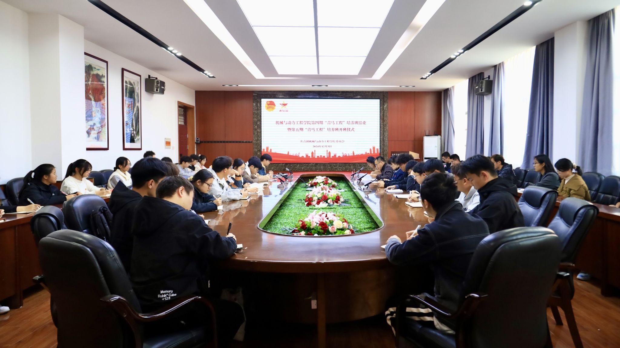 仪式伴随着雄壮的国歌声缓缓展开。会议上,王思思宣读了第四期“青马工程”培养班优秀学员代表名单与第五期“青马工程”培养班学员名单并由王帅为培养班优秀学员代表颁发证书,同时,老学员向新学员交接班旗。接着,第四期“青马工程”培养班优秀学员代表和第五期“青马工程”培养班新学员代表分别进行发言,他们呼吁学员们要以实际行动承担起新时代赋予青年的职责和使命。我院党委副书记王帅向顺利结业的第四期学员和即将接受培训的第五期学员表示热烈的祝贺,并对大家提出三点希望和要求:一是练就“拼搏有我”功夫本领,要做信念坚定的“筑梦人”;二是展现“青春有我”奋斗姿态,勇做追逐梦想的“追梦人”;三是扛起“强国有我”青春责任,争做百年复兴的“圆梦人”。 最后,仪式在团歌中落下帷幕。