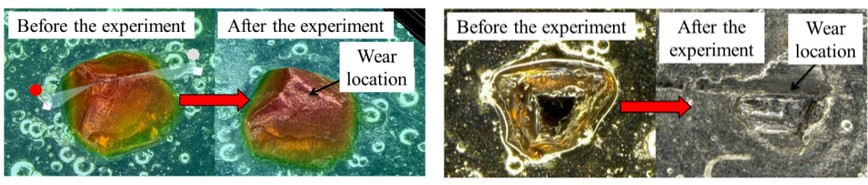 1)针对磨粒磨损对磨削力的影响,向道辉教授团队采用在刀具基体上电镀单颗CBN磨粒进行磨削实验。通过分析磨粒磨损形式并讨论其形成原因,并基于磨粒磨损体积与时间的变化关系,团队建立了超声辅助磨削中单颗磨粒动态磨削力理论模型并探索了不同参数下磨削力的变化规律,经QT500-7球磨铸铁磨削实验对理论模型进行了验证,为研究超声振动精密磨削的磨削机理奠定了基础。