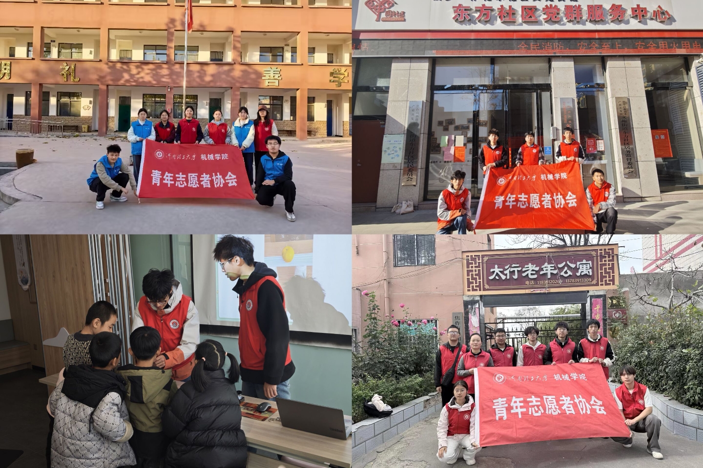 为深入践行社会主义核心价值观,弘扬“奉献、友爱、互助、进步”的志愿精神,切实履行青年责任,近日,机械学院青年志愿者协会组织志愿者开展了一系列形式多样、内涵丰富的志愿服务活动,覆盖敬老院、小学、社区等多个场景,用实际行动传递温暖,彰显新时代青年的责任与担当。