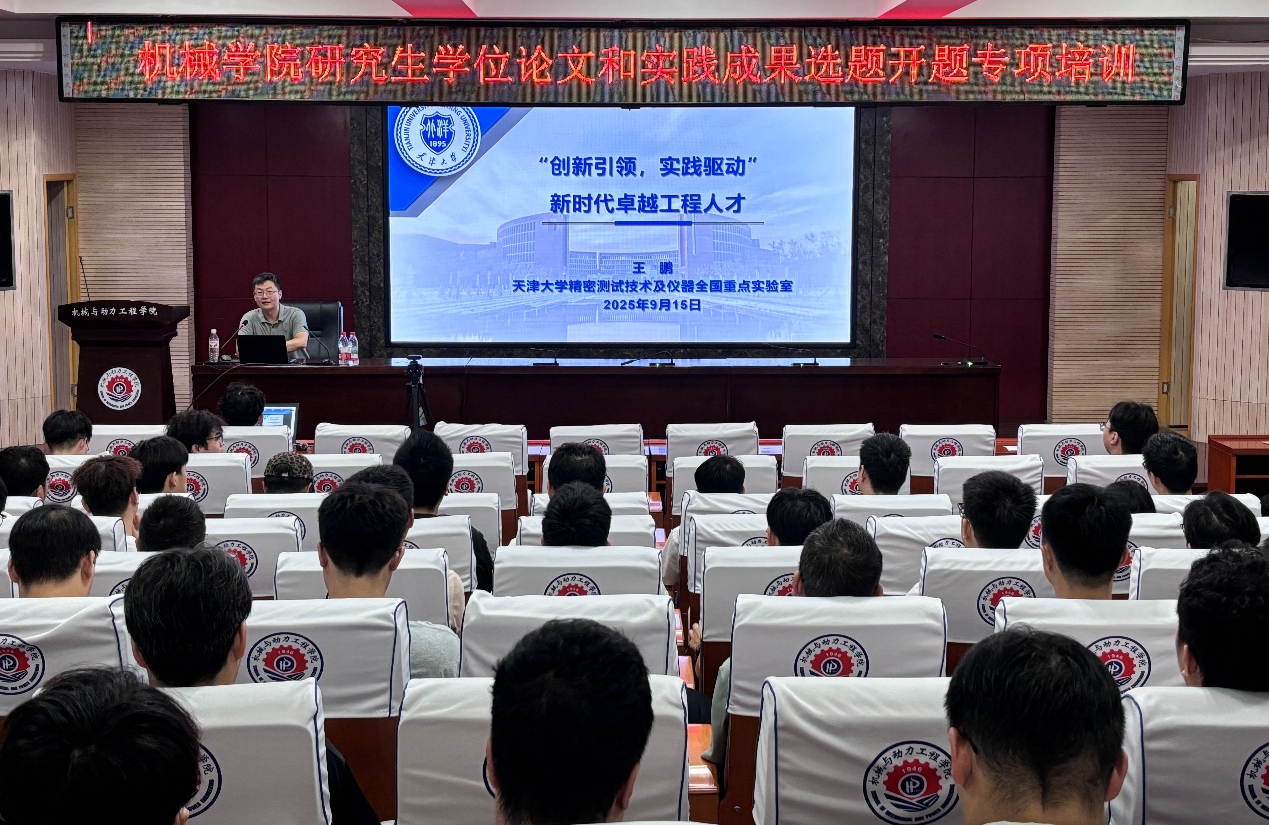9月15日上午,天津大学教授王鹏应机械学院邀约,在学院205会议厅作了题为“新时代卓越工程人才培养:创新引领与实践驱动的双轮融合”的专题讲座。本次讲座由机械学院副院长张登攀主持,我院24级全体研究生参会。