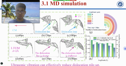 团队成员硕士生张丙洋(共同作者)参加了(视频)会议并作题为《Microfracture mechanism of longitudinal torsional ultrasonic- assisted milling of 49Fe-49Co-2V alloy: experiment and MD simulation》(Best Paper Award)的学术报告,详细介绍了超声辅助铣削技术的最新研究成果,对49Fe-49Co-2V等脆性合金微观断裂机理进行了深入探讨,对软磁合金高性能构件的工业应用具有重要意义。