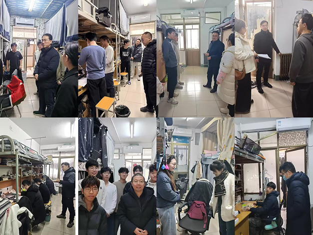 同时,学院领导与老师也借此次走访,积极引导学生保持规律作息、整理好宿舍内务,并对各宿舍用电安全、消防安全隐患进行了全面检查,叮嘱同学们务必增强安全意识,严禁使用违规电器,共同维护安全、整洁的住宿环境。