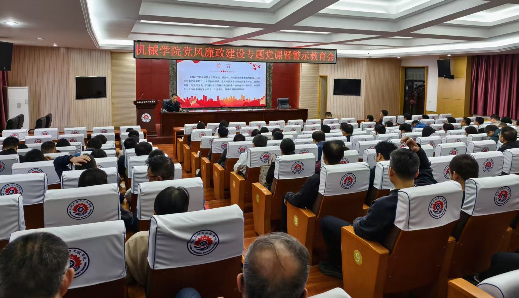 为深入推进全面从严治党,持续加强党风廉政建设,进一步筑牢党员干部廉洁自律思想防线,4月21日下午,我院在205会议室召开党风廉政建设专题党课暨警示教育会。学院副院长焦锋以“以严的基调强化正风肃纪”为主题,为全院党员干部、教职工讲授专题廉政党课。