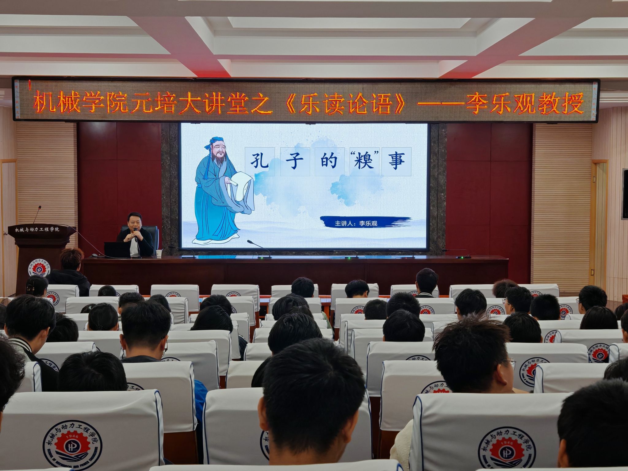 本次讲座是机械与动力工程学院“元培大讲堂”国学经典系列活动之一,旨在提升学生的传统文化素养,进一步激发新时代大学生传承和发扬中华优秀传统文化的责任感。通过此次活动,学生们更加深刻地理解了孔子的哲学思想,并在未来的学习和生活中,不忘初心,牢记使命,积极投身建设更加和谐美好的社会主义社会。