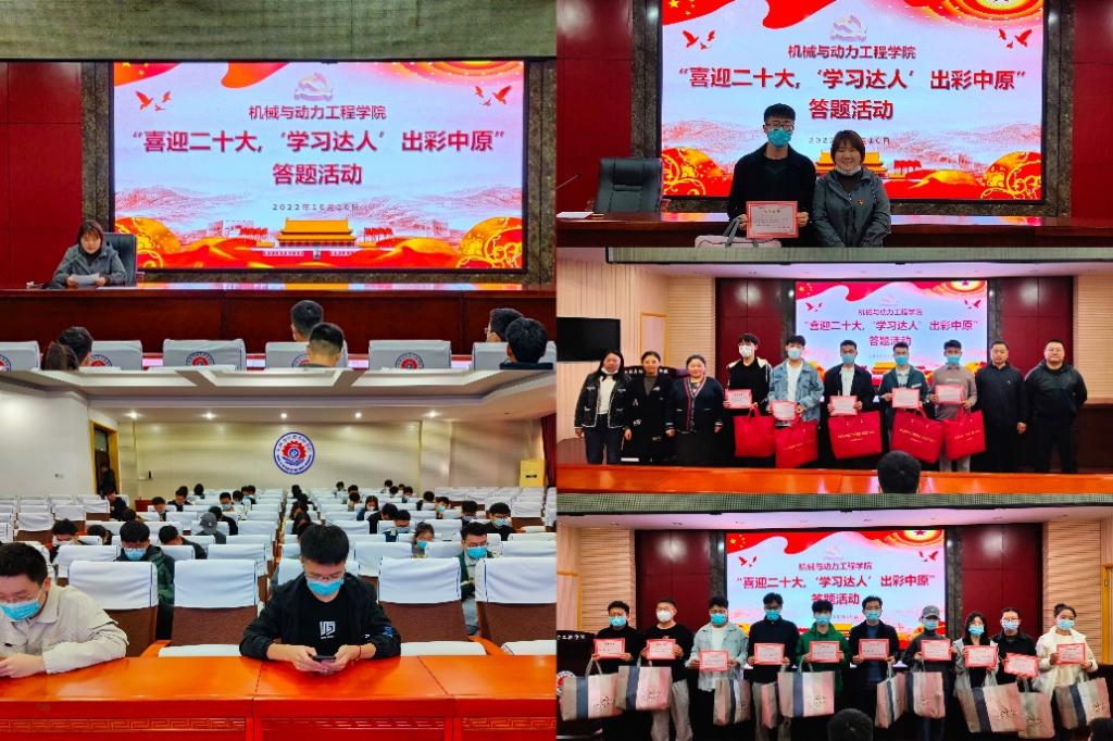 2022年10月10日,为深入贯彻落实习近平新时代中国特色社会主义思想,不断巩固党史学习教育成果,机械学院党委以实际行动带动学生党员广泛参与学习,进一步加强“学习强国”学习平台的推广使用工作,营造学生党员之间浓厚的学习氛围。机械学院党委在205会议室开展“喜迎二十大,‘学习达人’出彩中原”答题活动。